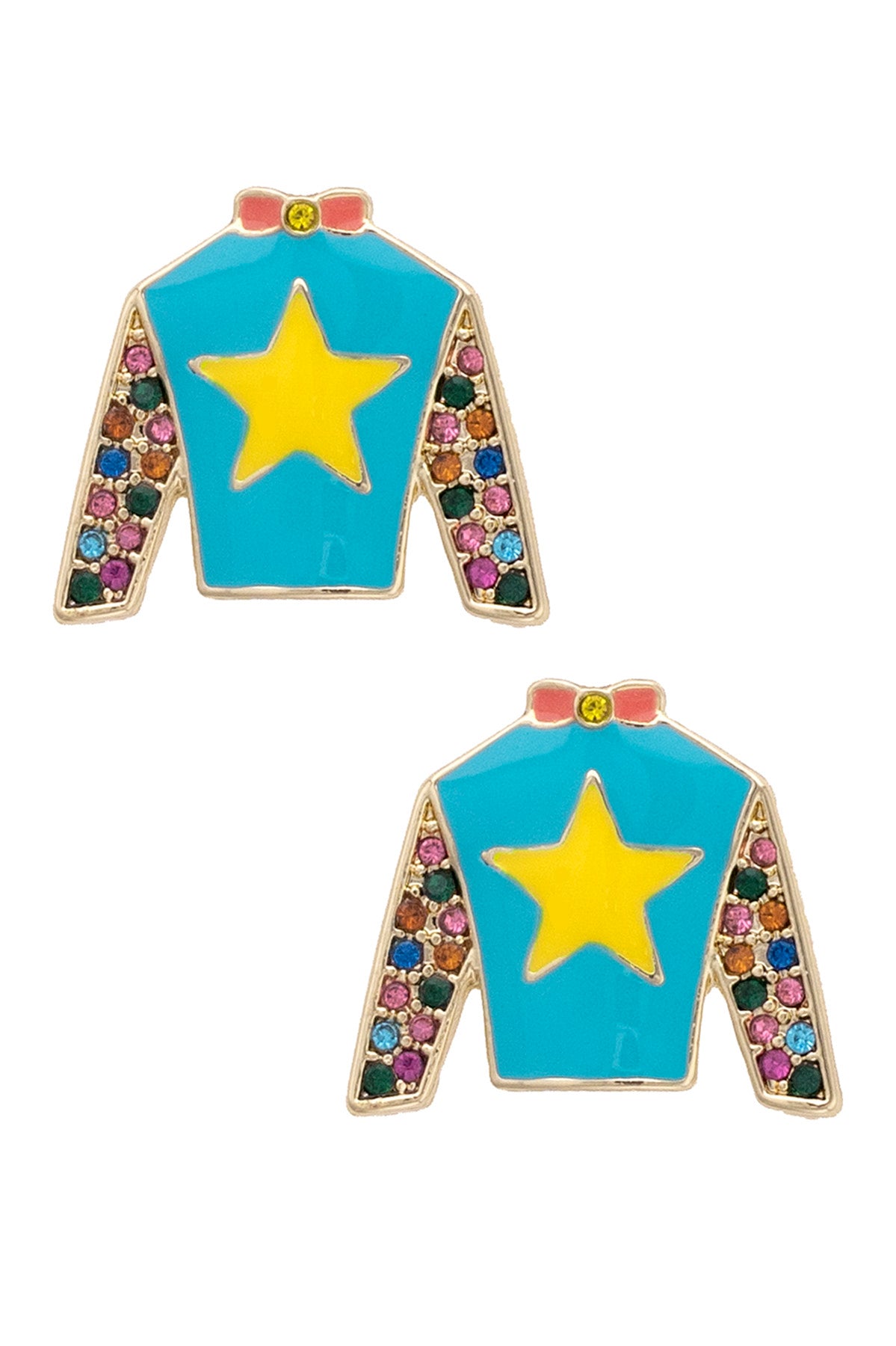Soft light blue enamel studs inspired by jockey silks. Subtle, sweet, and easy to wear.