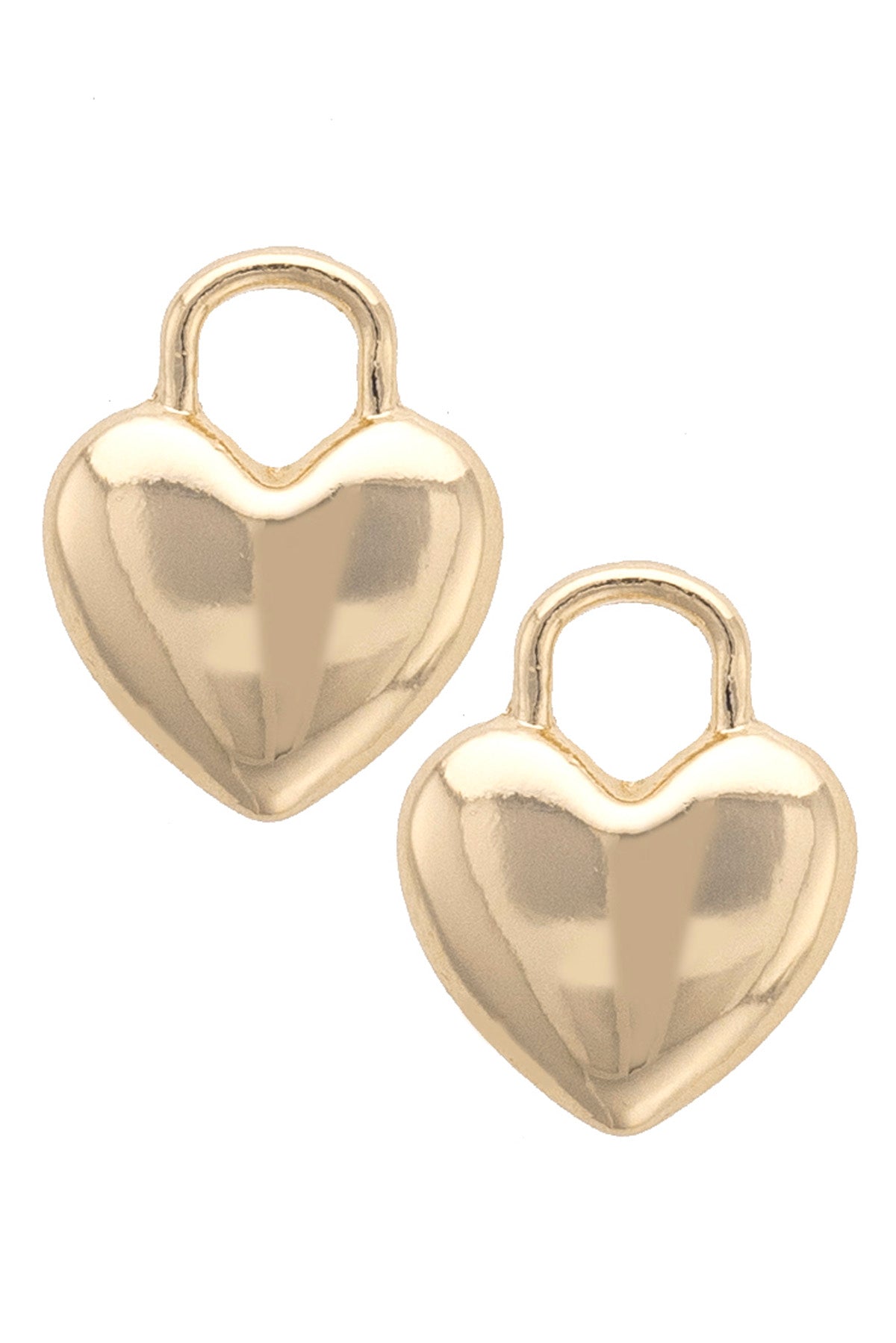 Hendrick Puffy Heart Padlock Stud Earrings in Shiny Gold