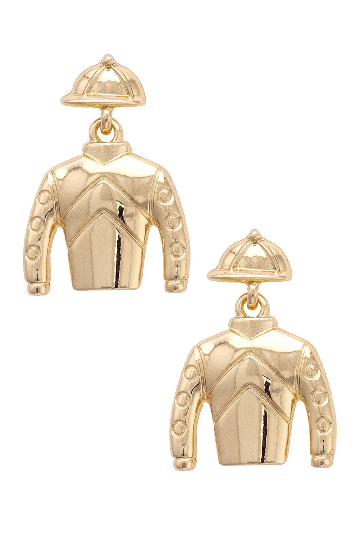 Minimal stud earrings inspired by jockey motifs in shiny gold. A subtle nod to race-day tradition.