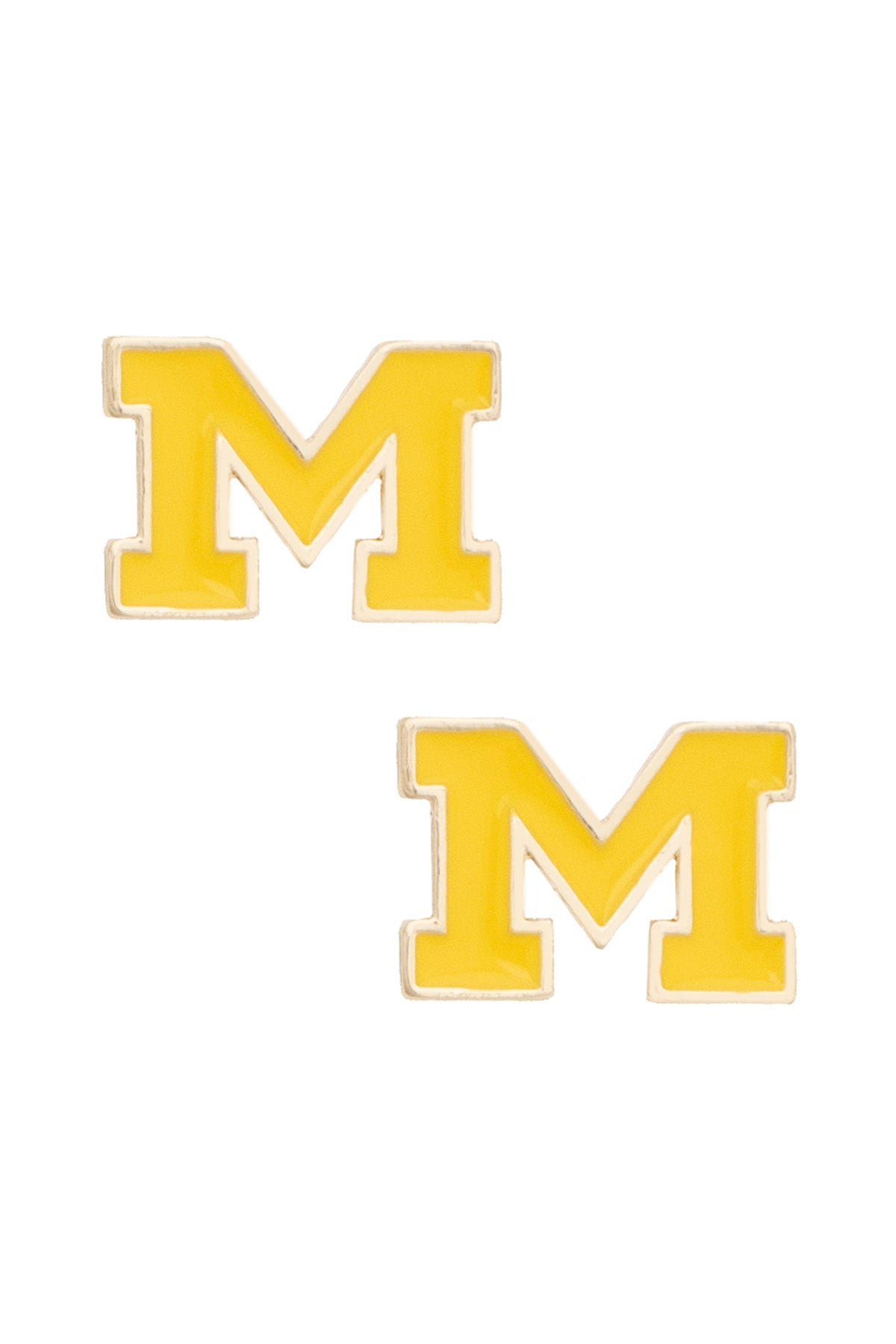 PREORDER 4/10: Michigan Wolverines Enamel Logo Stud Earrings in Shiny Gold