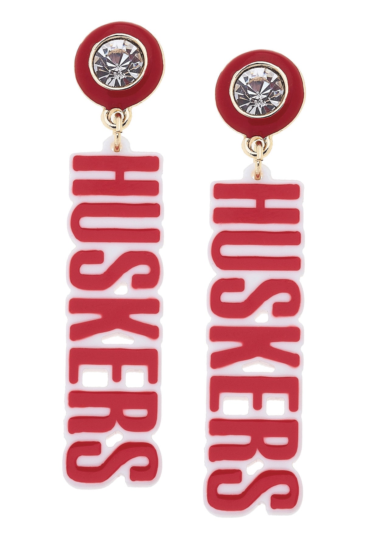 Show off your team pride with the Nebraska Huskers Resin Block Letter Earrings in red. Featuring bold block lettering and a lightweight design, they’re the perfect statement accessory for game day.