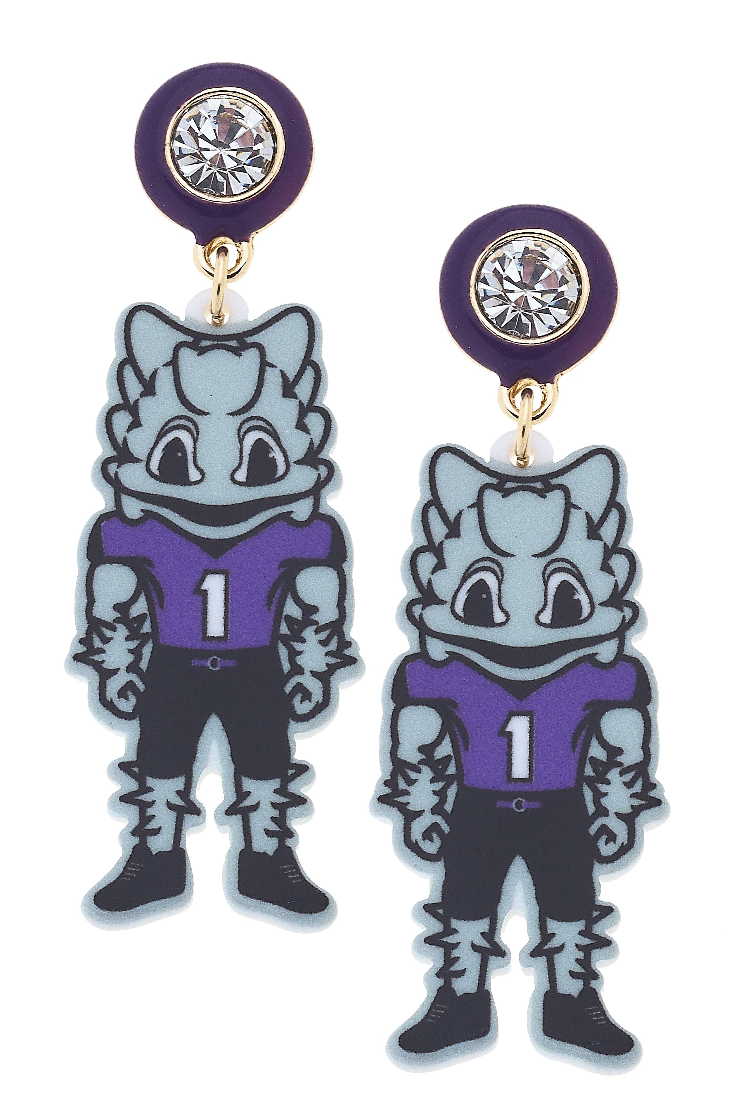 PREORDER 12/10: TCU SuperFrog Resin Mascot Earrings in Purple/Grey