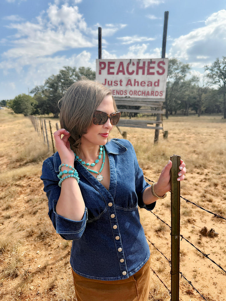 Crackled turquoise stones give this necklace a natural, earthy feel. A must-have for fans of bold, statement jewelry.