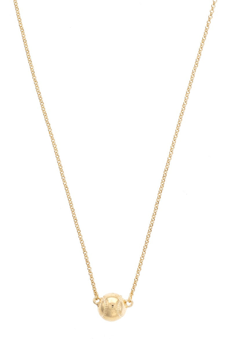 A timeless shiny gold chain accented with a baseball charm. This necklace adds an easy sporty touch to any outfit.