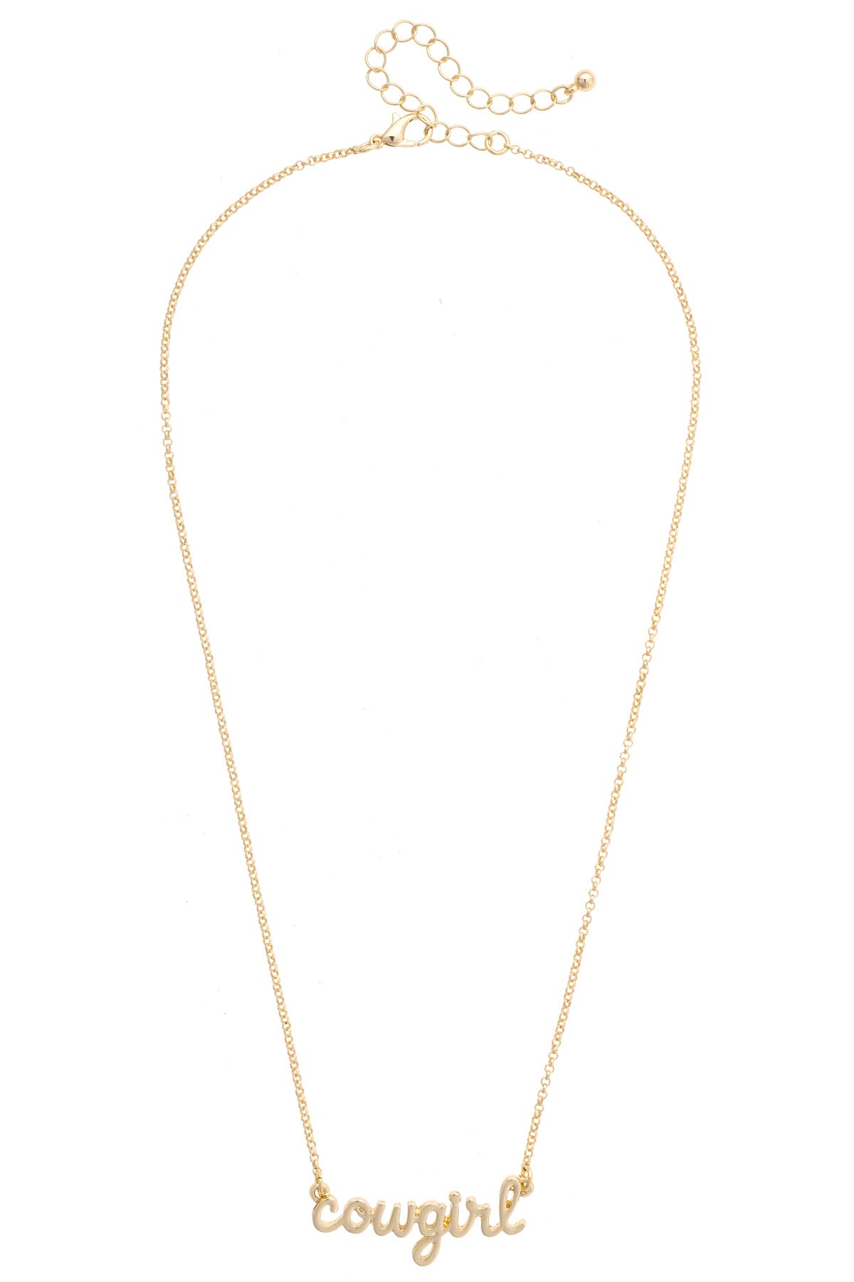 Spell out your cowgirl spirit with this shiny gold chain necklace. Fun, stylish, and perfect for Western fashion fans.