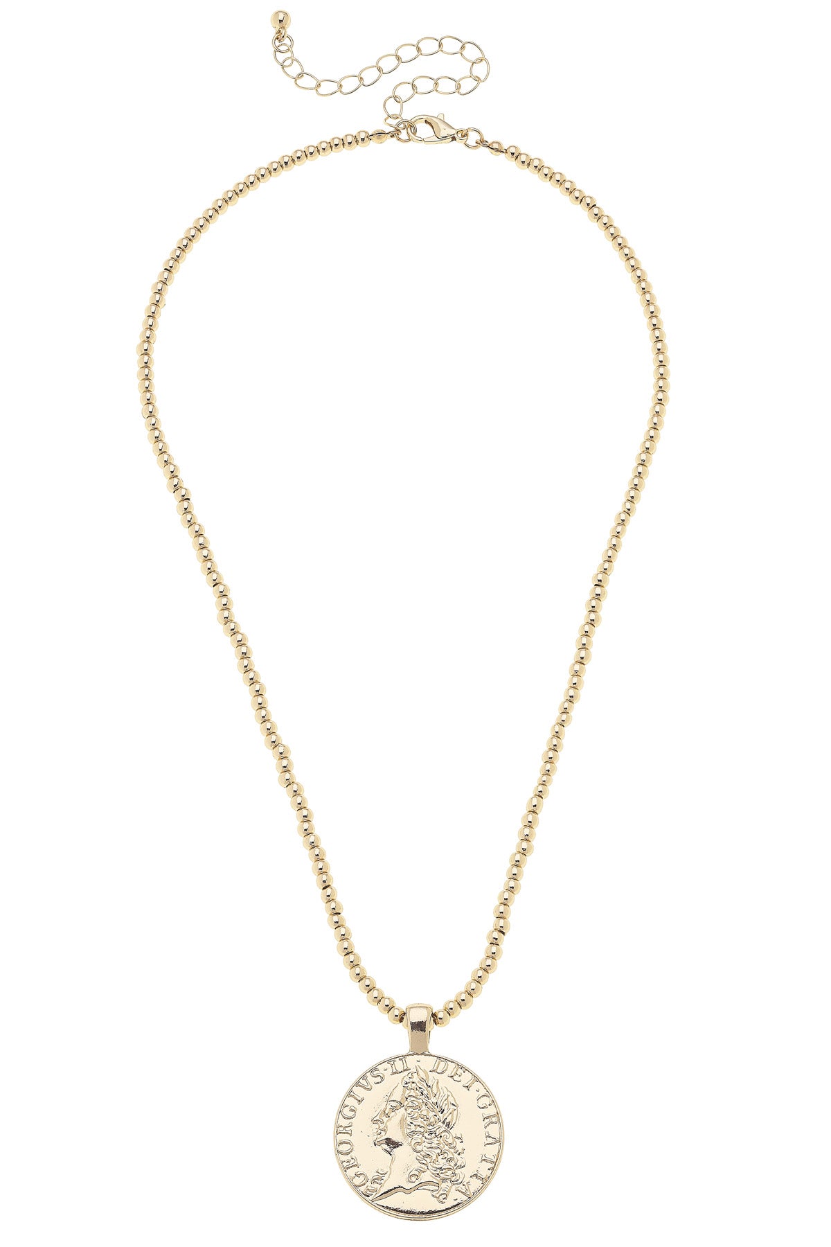 Luciana Ball Bead Coin Pendant Necklace in Shiny Gold
