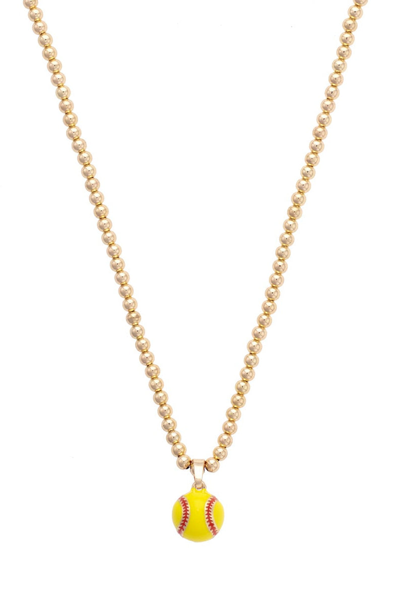 A shiny gold ball bead necklace finished with a colorful enamel softball charm. Sporty yet polished, it's perfect for layering or wearing solo.