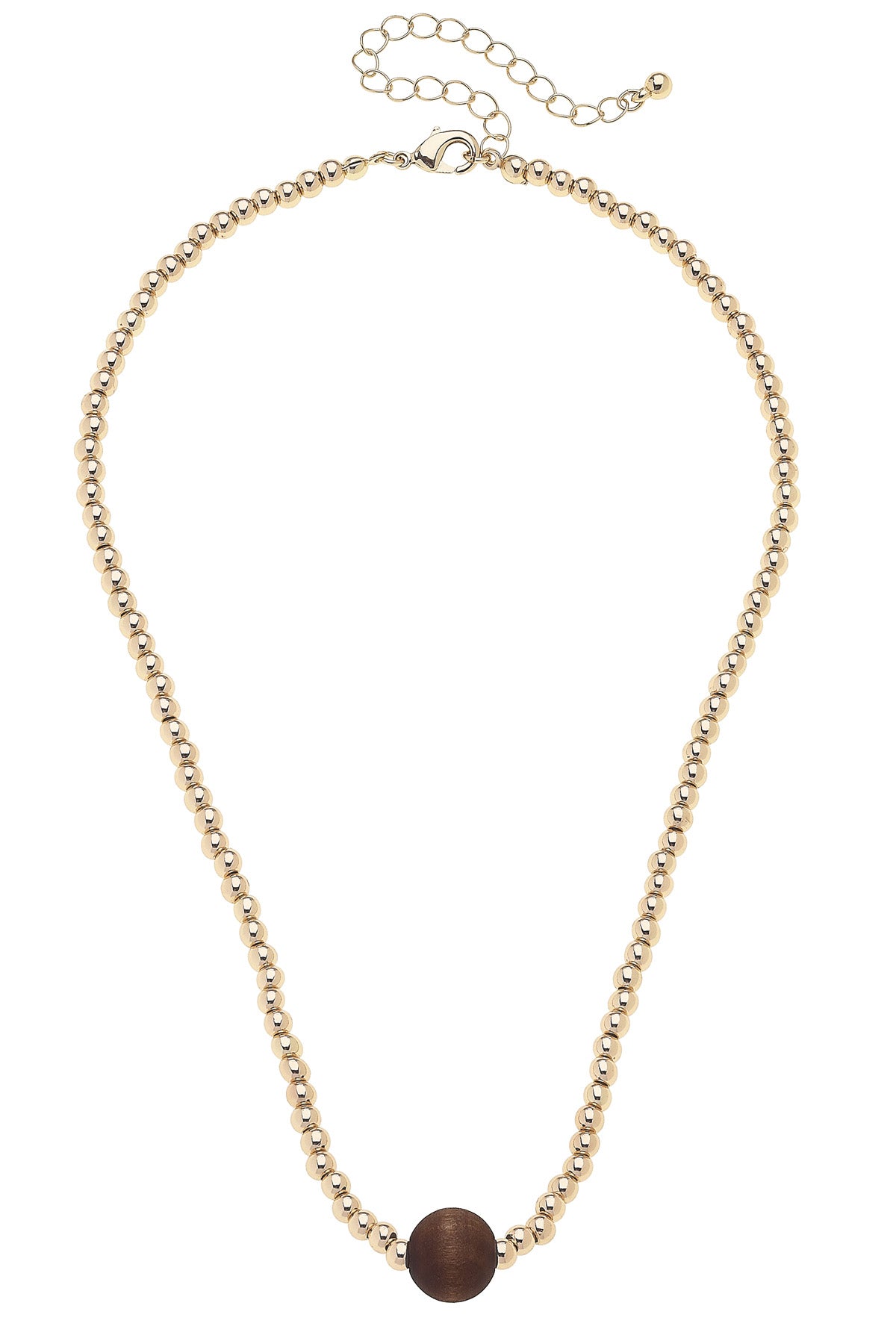 Wren Wood Ball Bead Necklace in Shiny Gold