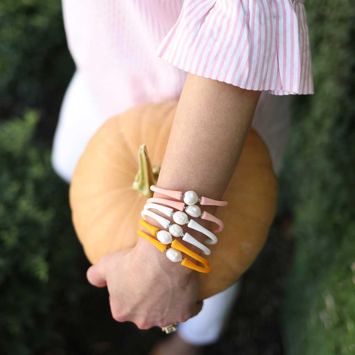Our best-selling bracelets are made for living your best life! From workouts to game day to holiday spirit the stack combinations are endless. Choose from our classic styles made from Freshwater Pearls and 24K Gold Plated Beads, or our enamel sports charms.