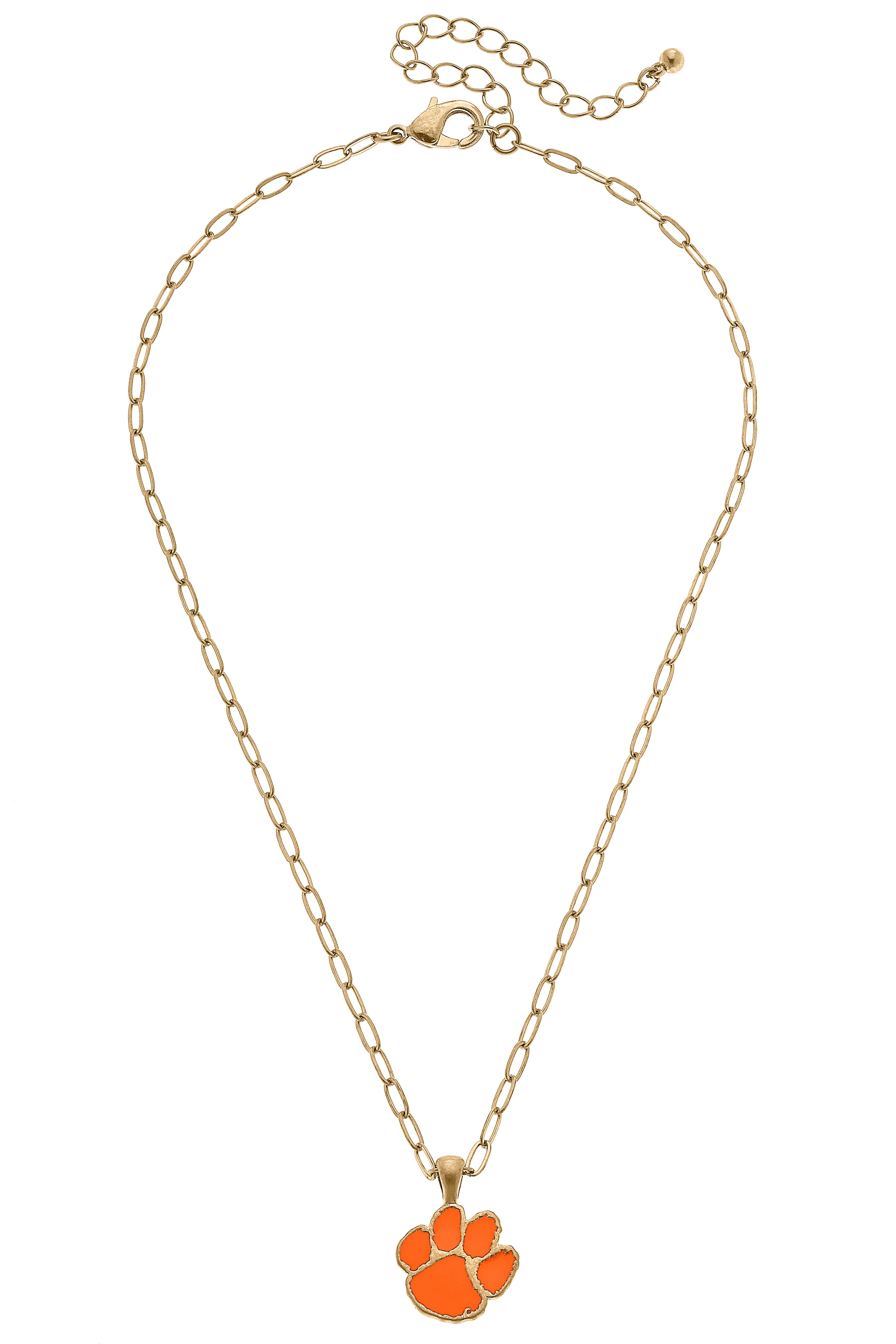 Clemson Tigers Enamel Pendant Necklace in Shiny Gold