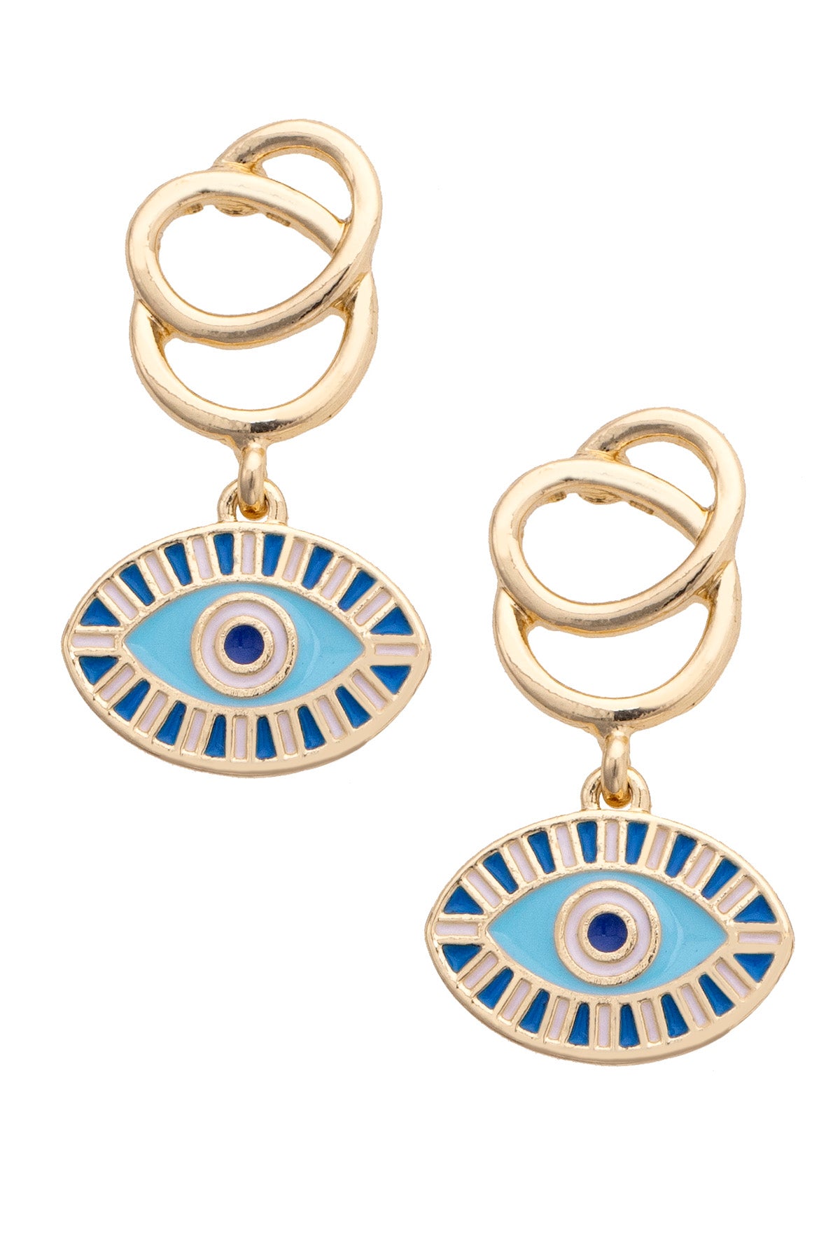 Evil Eye Drop Hoop Earrings in Shiny Gold