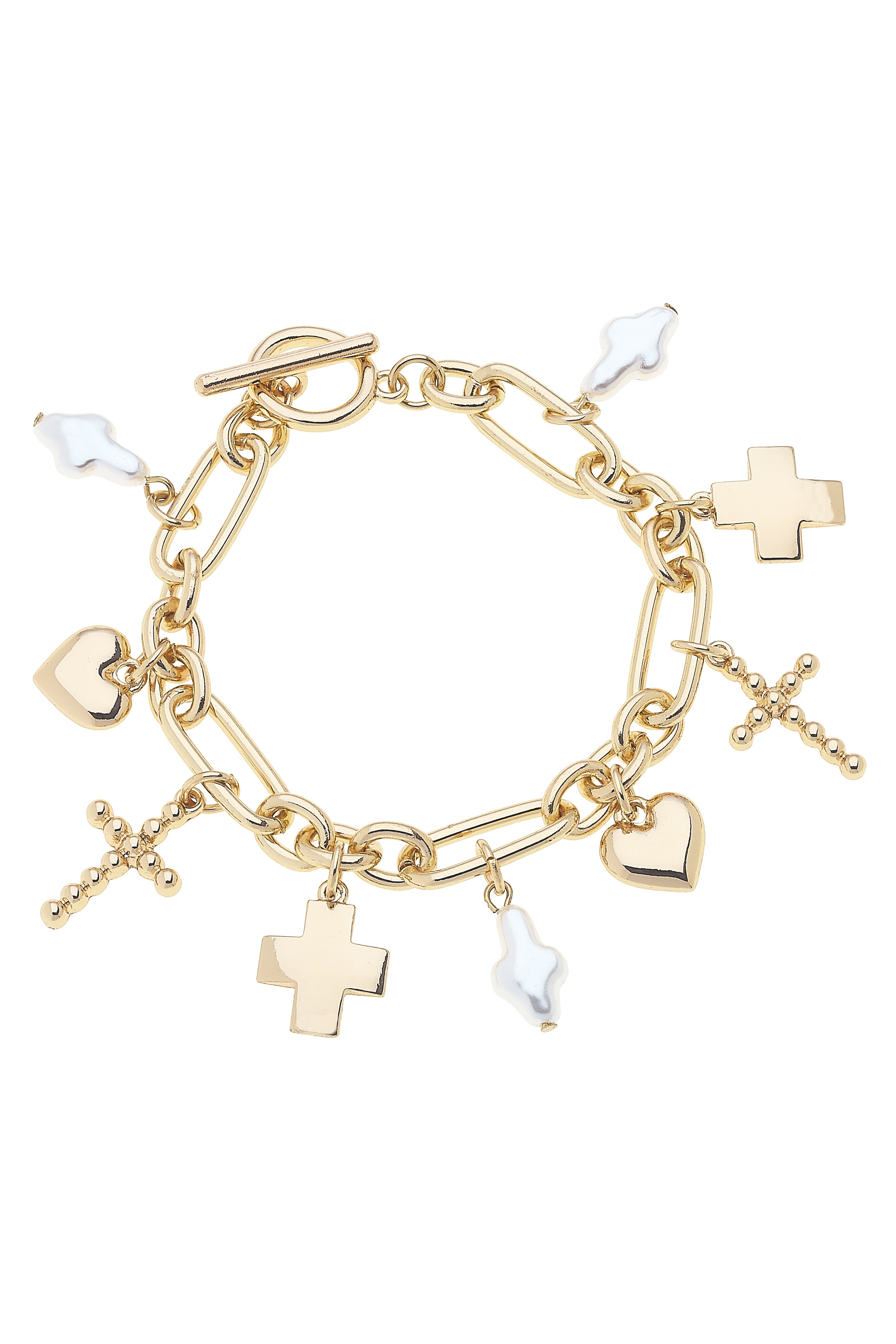 Helena Multi Cross Charm Bracelet in Shiny Gold