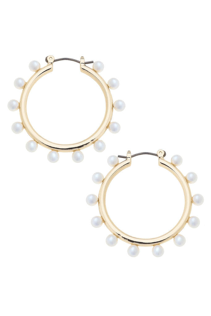 Winslie Pearl Studded Hoop Earrings in Ivory