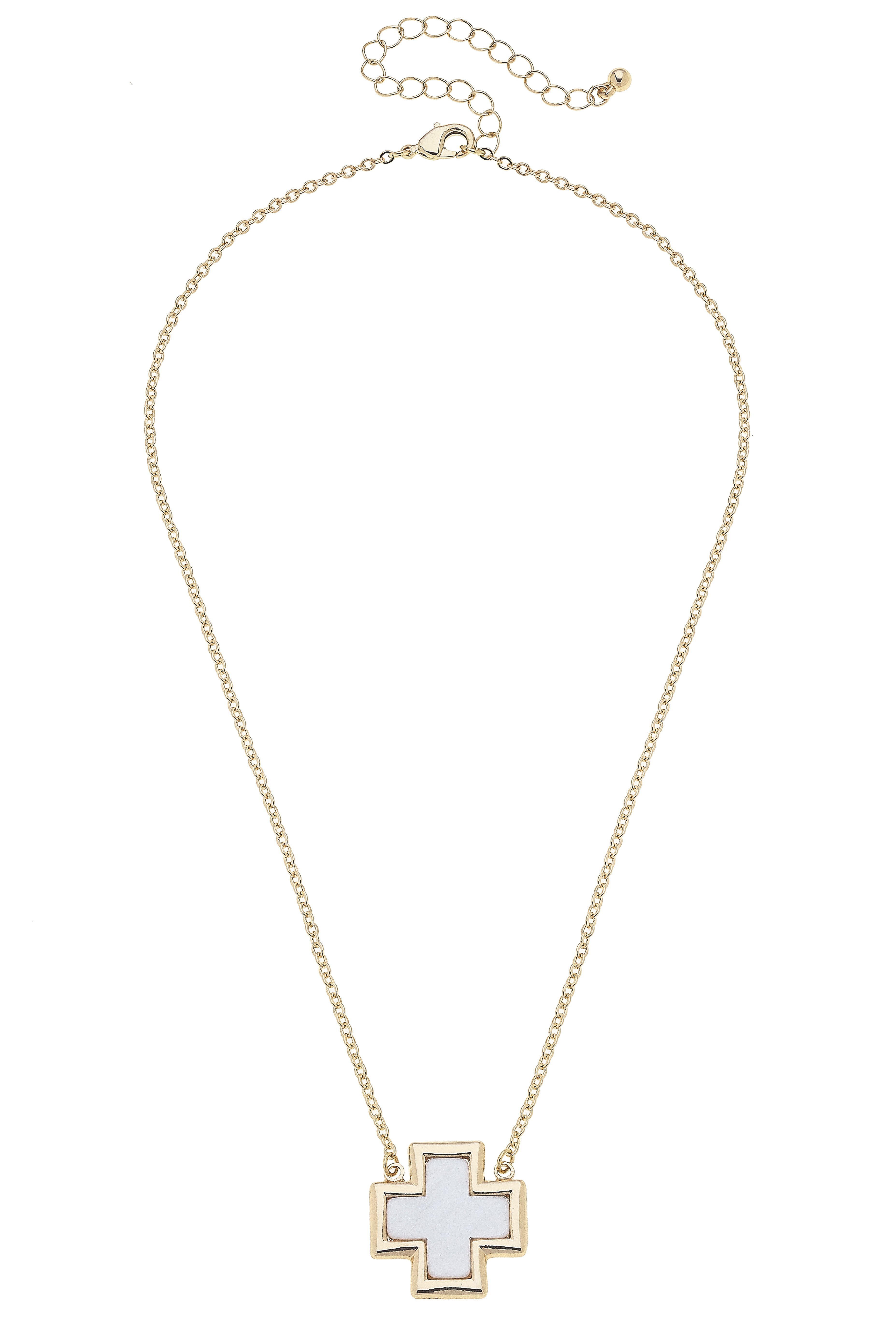 A timeless symbol of faith meets modern elegance in this square cross necklace, crafted with lustrous Mother of Pearl. Its delicate design adds a meaningful yet chic touch to any look.