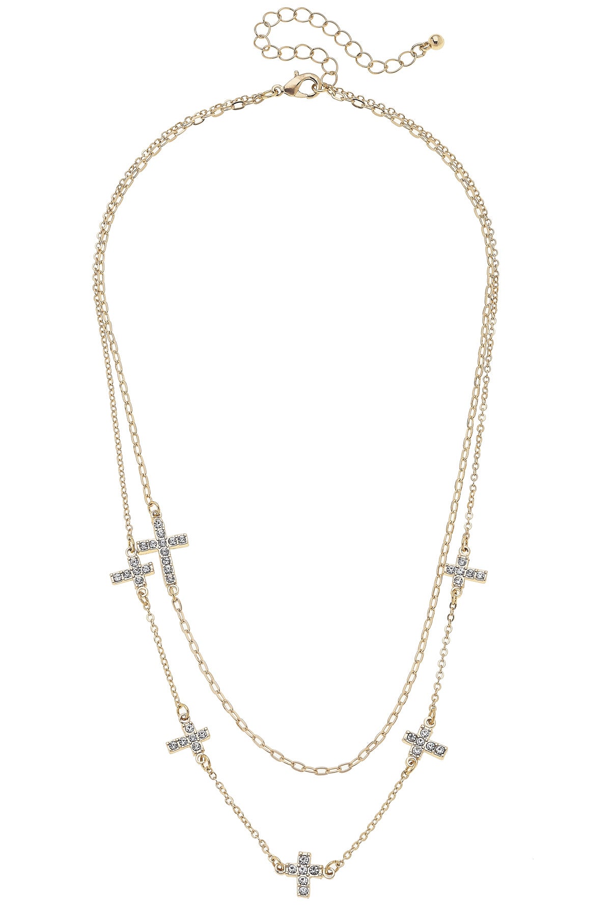 Mabel Pavé Cross Layered Necklace in Shiny Gold