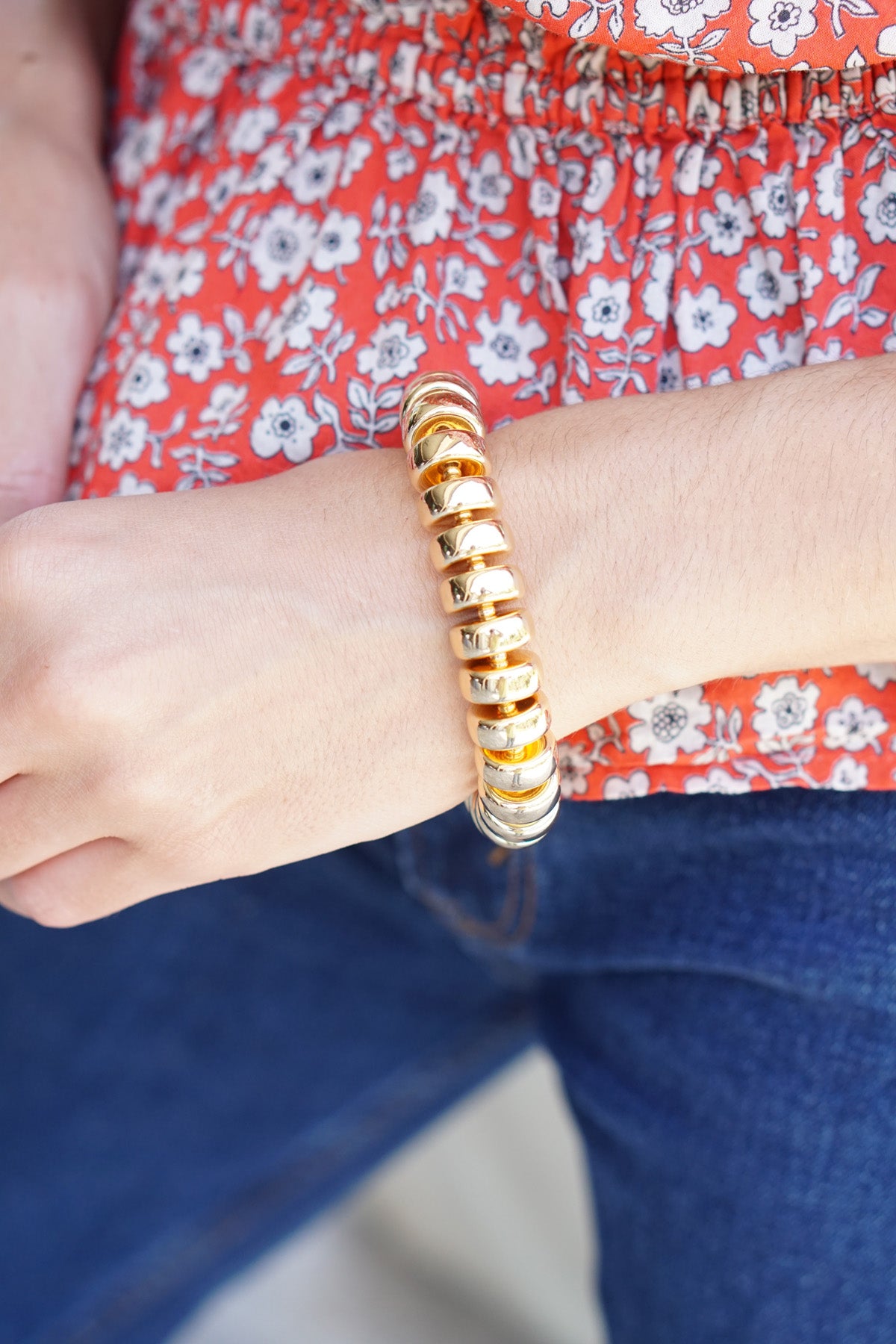 Sleek and stretchy, the Miranda coil bracelet wraps your wrist in shiny gold for a modern stacked effect.
