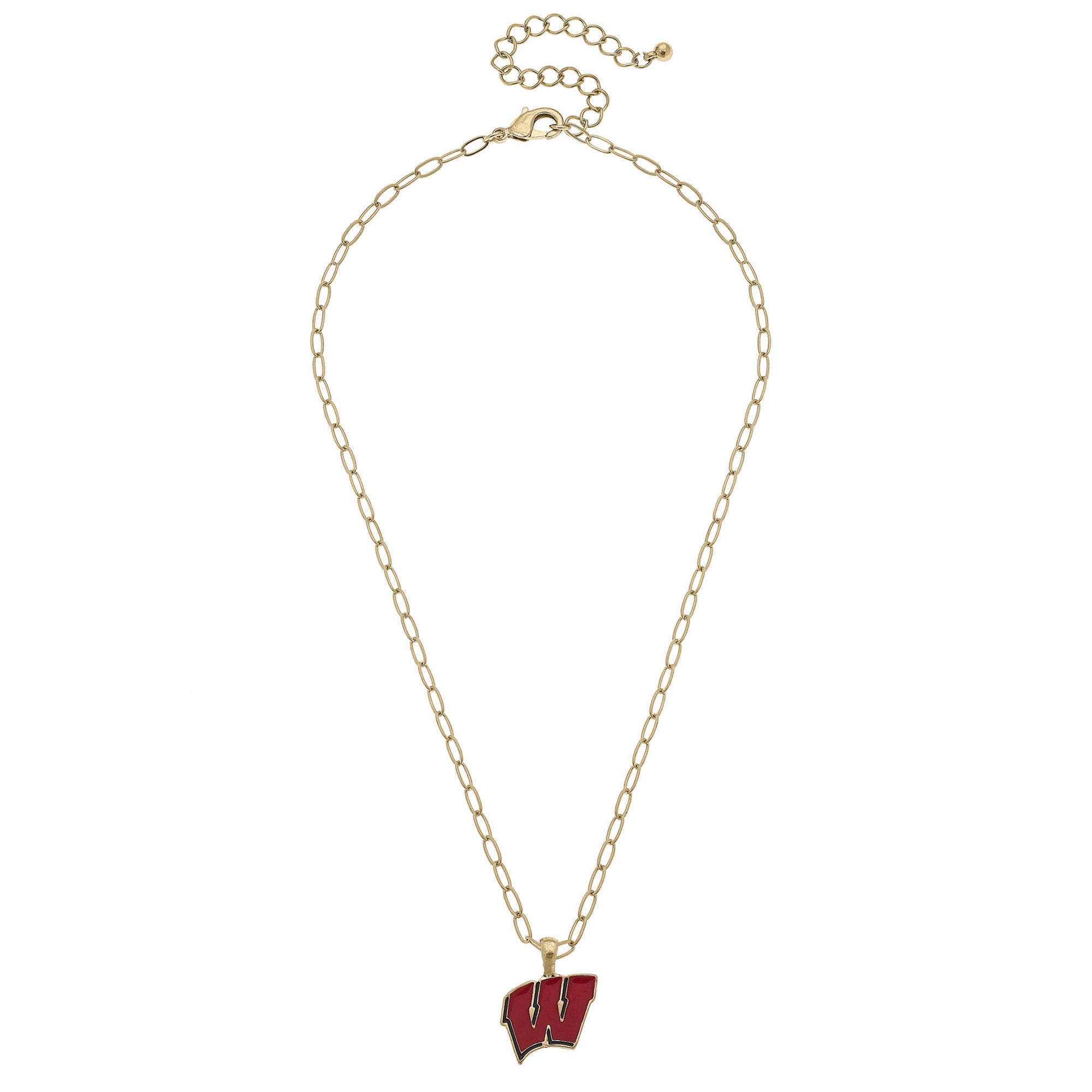 PREORDER 12/10: Wisconsin Badgers Enamel Pendant Necklace in Shiny Gold