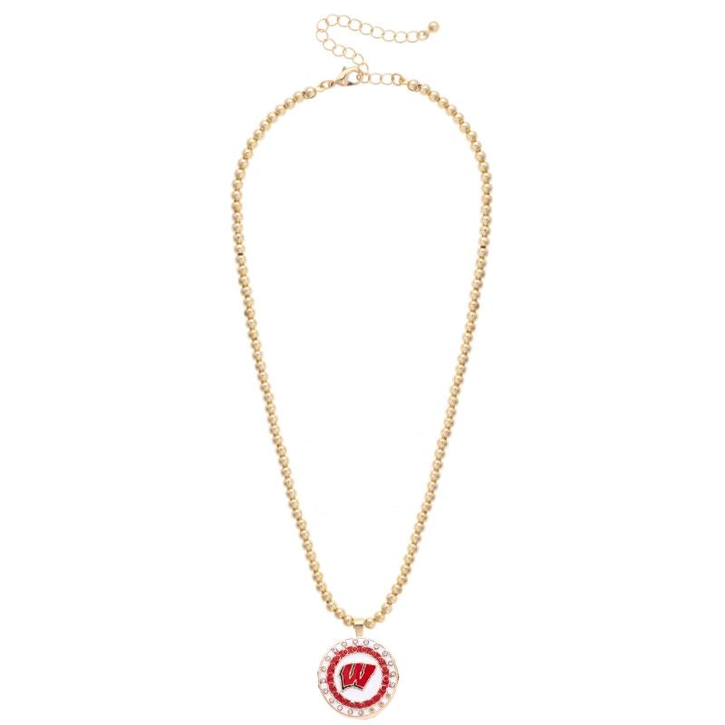 PREORDER 12/10: Wisconsin Badgers Pave Disc Necklace in Shiny Gold