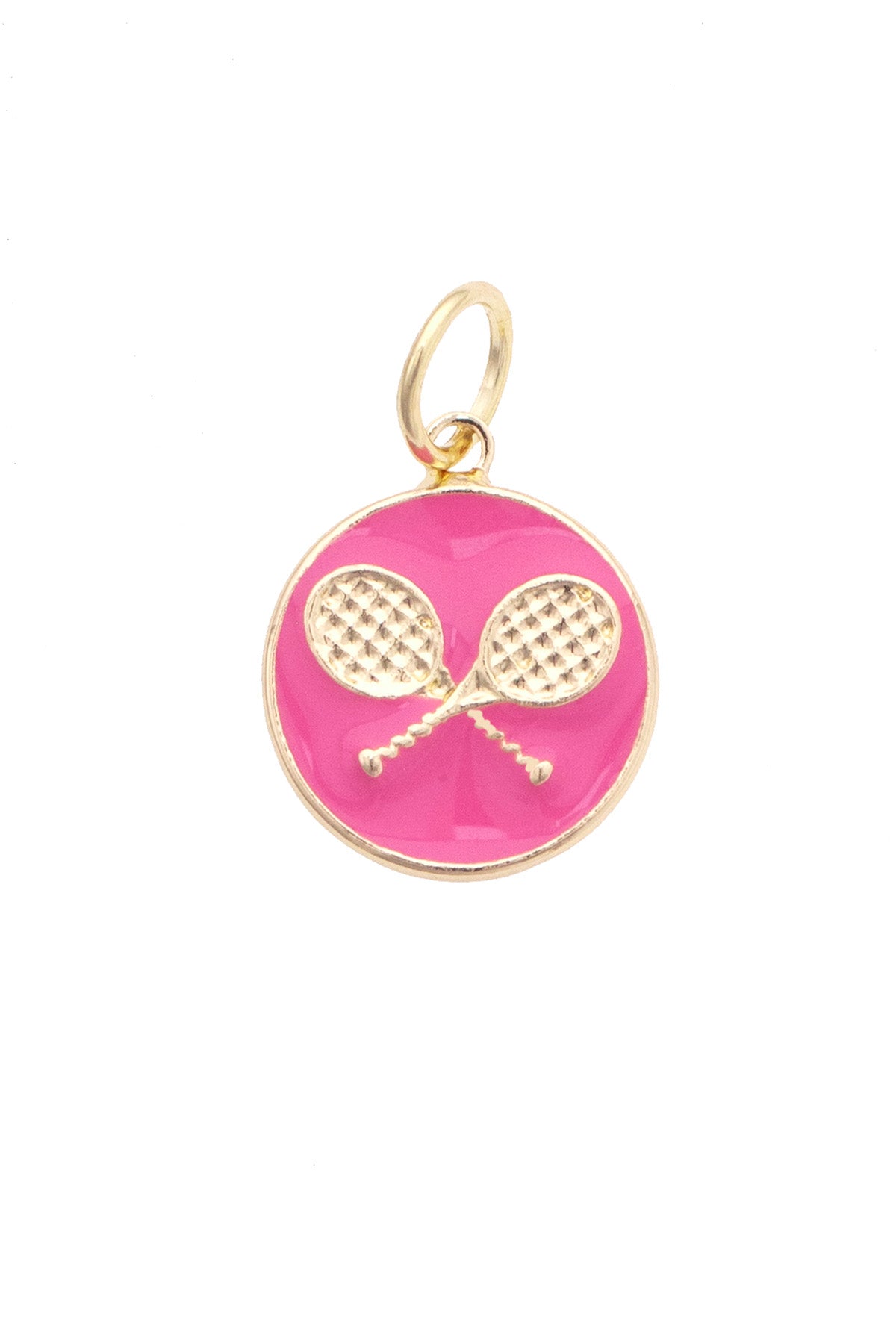 This pink circle tennis racquets charm serves up style with a bold, colorful twist. Perfect for sporty accessory collections.
