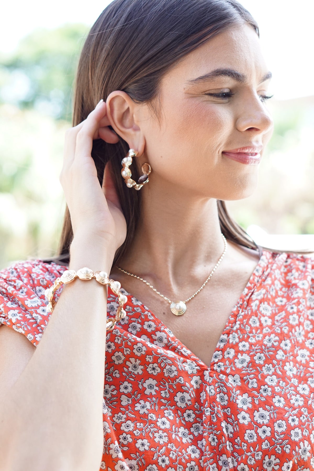 A sleek hinged bangle in gleaming gold that houses a floating pearl within its cage. Bold but elegant, perfect when you want jewelry that catches attention without overpowering your look.