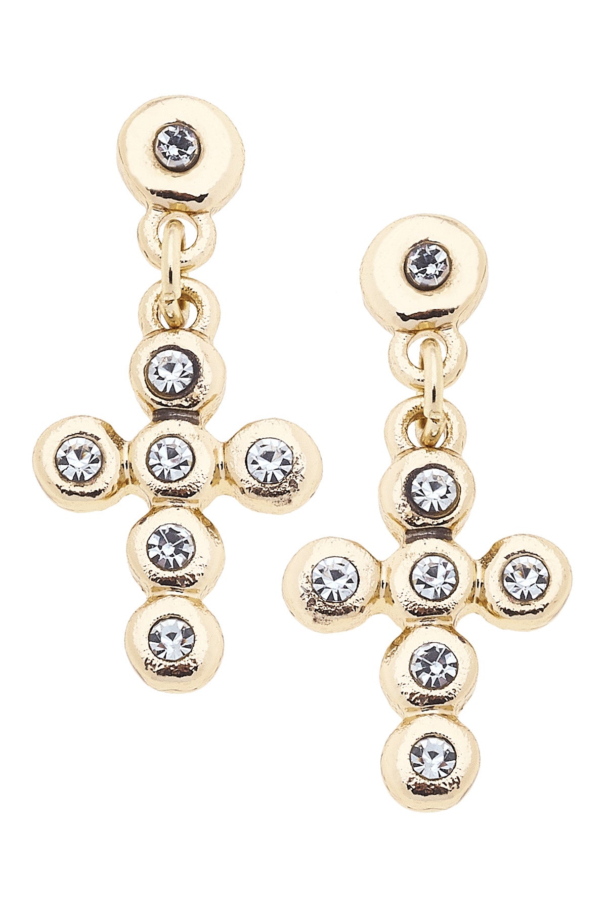 Elizabeth Pavé Cross Drop Earrings in Shiny Gold