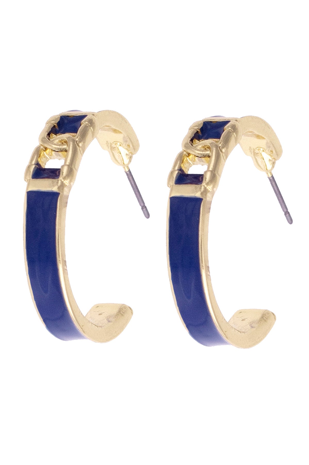 Lyra Linked Horsebit Enamel Hoop Earrings in Navy